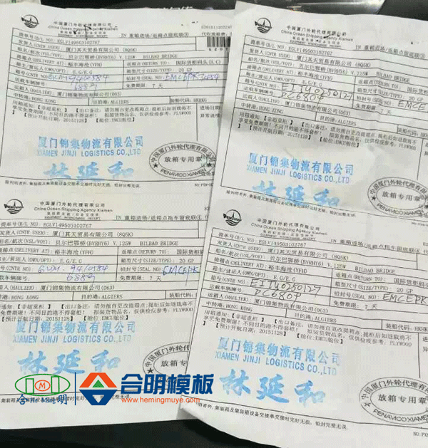 近期,合明模板出貨11柜酚醛建筑模板至阿爾及利亞,共計(jì)10500張。