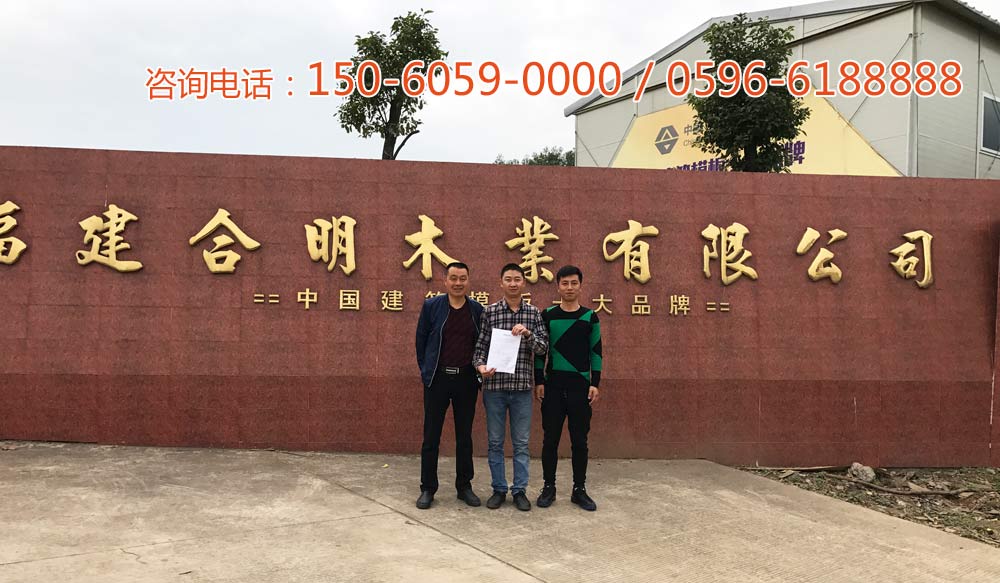 1月8日,寧波奉化合明模板總經(jīng)銷商--優(yōu)達(dá)建材商行、應(yīng)全明木材經(jīng)營部兩位負(fù)責(zé)人,專程到合明工廠進(jìn)行年度考察,并成功簽訂2017年度銷售量16萬張以上的經(jīng)銷合同。