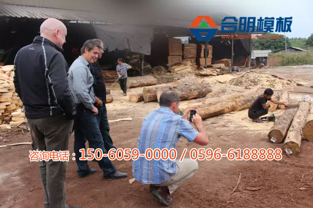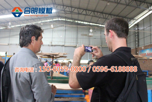 TPT集團(tuán)中國(guó)負(fù)責(zé)人在為新西蘭林場(chǎng)主講解介紹合明公司和合明模板制作工藝。