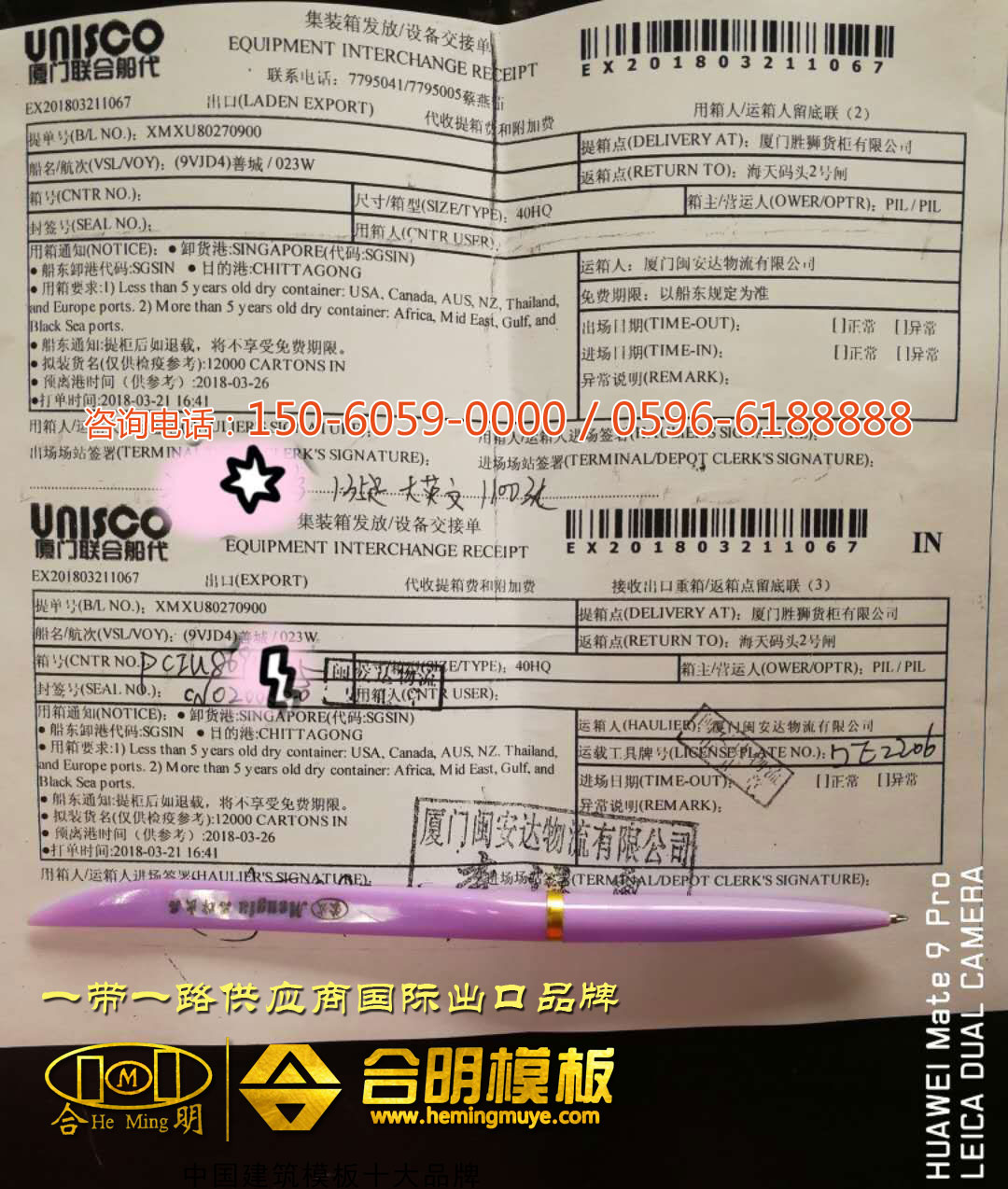 從今日出口菲律賓和印度的發(fā)貨單看,出口印度主要是合明英文覆膜板和合明定制方木,出口菲律賓為合明英文覆膜板,通過集裝箱走海運直達出口國家。