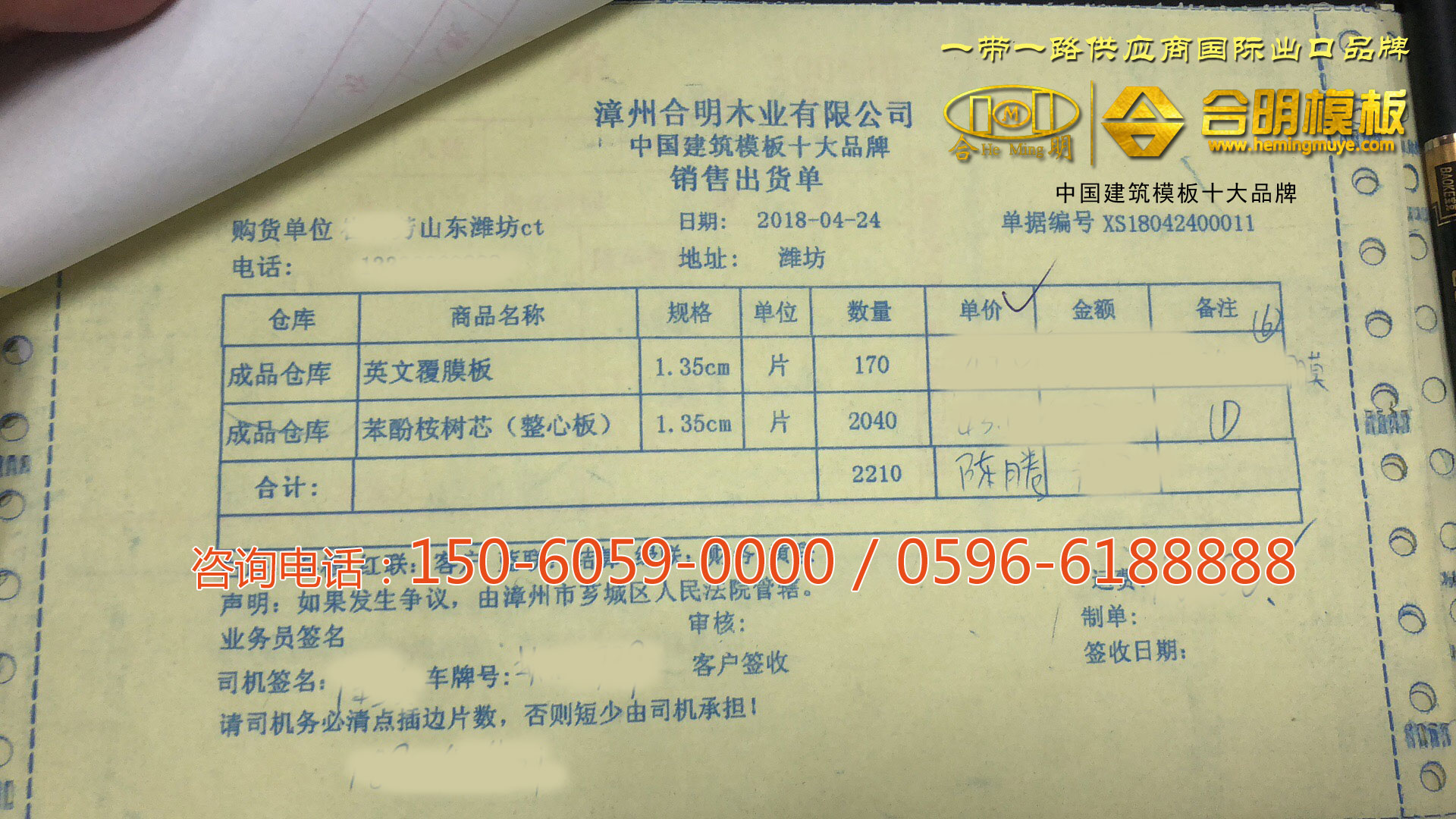 今日合明模板最遠(yuǎn)發(fā)至山東濰坊,合明從2017年開始挺進(jìn)山東地區(qū),今年來不斷吸引山東的客戶。雖然山東距離漳州路途遙遠(yuǎn),但是合明模板的超強(qiáng)性價(jià)比和雙方的海運(yùn)優(yōu)勢,使得合明模板在山東地區(qū)具備競爭實(shí)力。