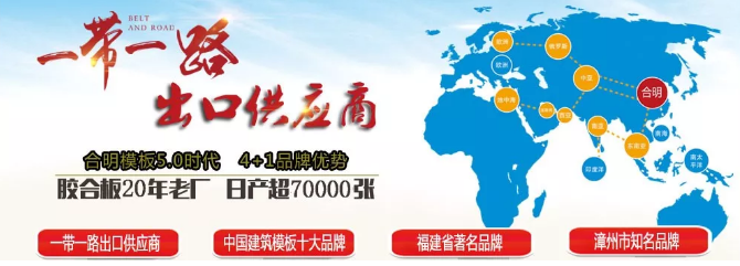 合明模板是國(guó)家注冊(cè)知名品牌,一帶一路出口供應(yīng)商、中國(guó)建筑模板十大品牌、福建著名品牌、漳州知名品牌