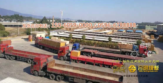 合明模板排長(zhǎng)龍等裝貨的車(chē)子