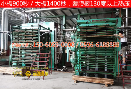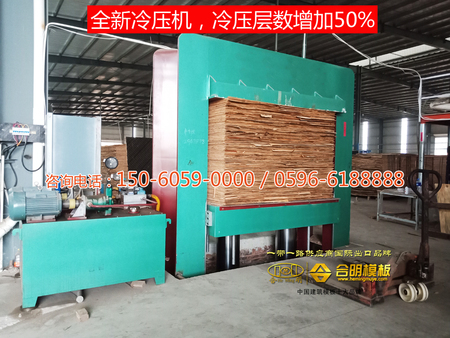 滾好面膠或者覆好膜的板,用熱壓機(jī)進(jìn)行熱壓。合明熱壓機(jī)是全國(guó)領(lǐng)先新型熱壓機(jī),可根據(jù)不同種類(lèi)模板進(jìn)行各種高溫?zé)釅?,熱壓時(shí)間超長(zhǎng),小板900秒大板1400秒,一般覆膜板130度以上熱壓,高脂覆膜板150度超高溫?zé)釅?,熱壓好的模板最多可周轉(zhuǎn)38次。