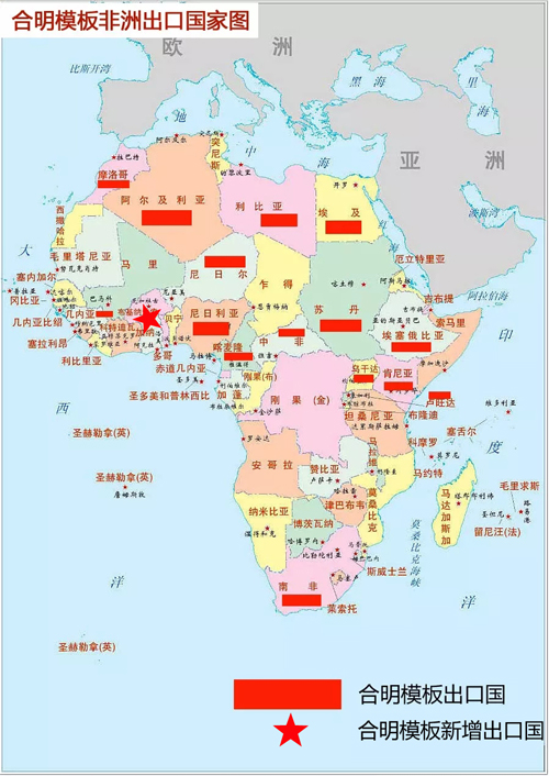 近日,合明建筑模板出口到非洲加納。至此,合明建筑模板已出口非洲地區(qū)國家有:埃及、利比亞、摩洛哥、阿爾及利亞、埃塞俄比亞、肯尼亞、蘇丹、烏干達(dá)、盧旺達(dá)、喀麥隆、幾內(nèi)亞、尼日利亞、南非、中非、尼日爾、加納等16個國家。