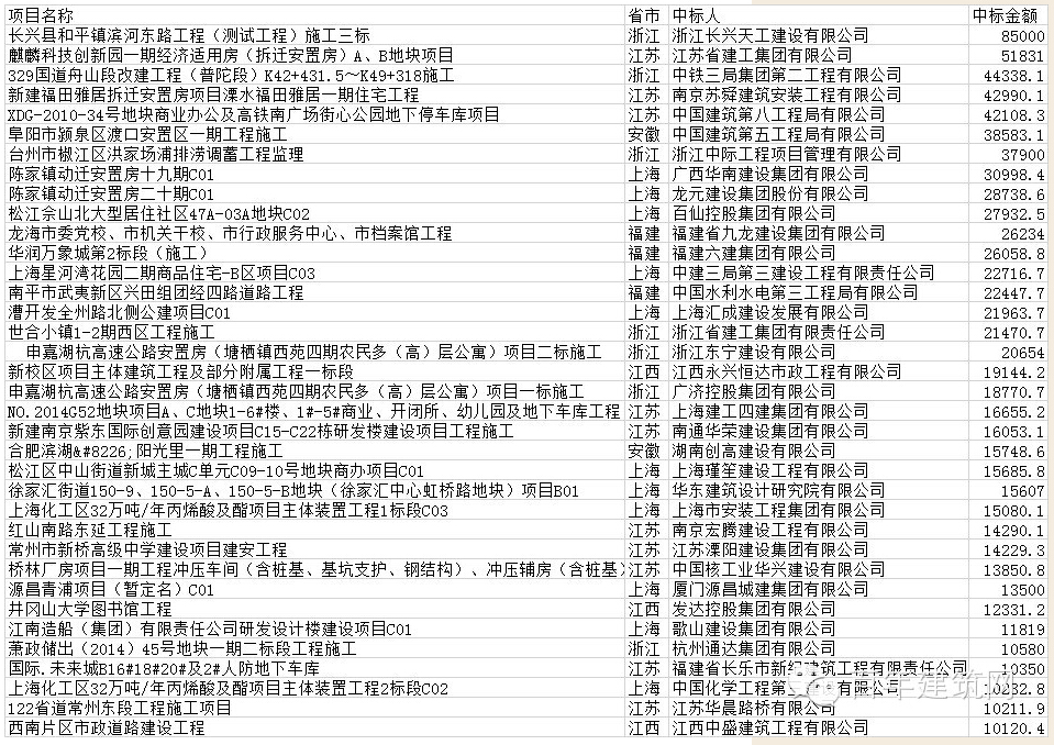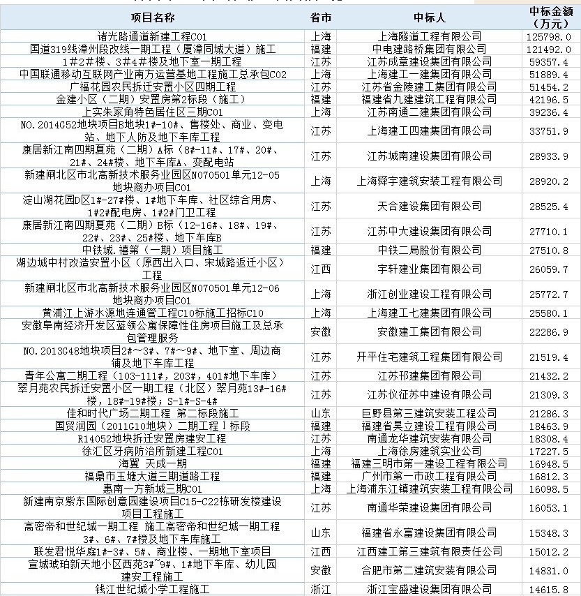 本周華東地區(qū)億元以上施工中標(biāo)項目一覽