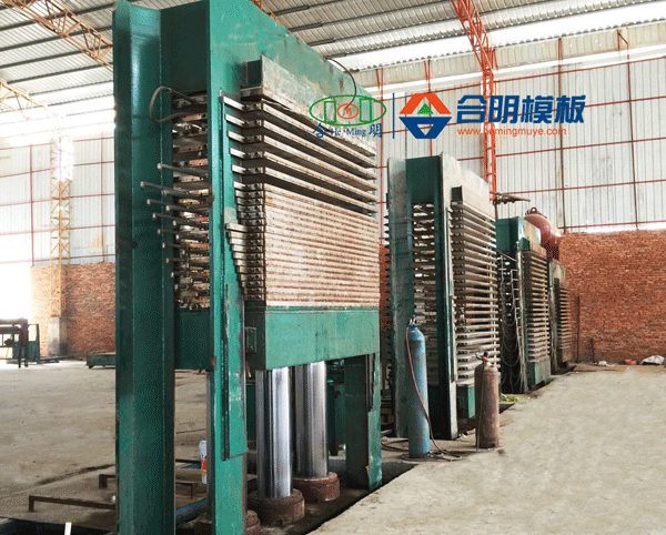 6、冷壓。排列好的模板層進(jìn)行冷壓,使膠板很好地結(jié)合起來,使各層板充分定型不跑位。