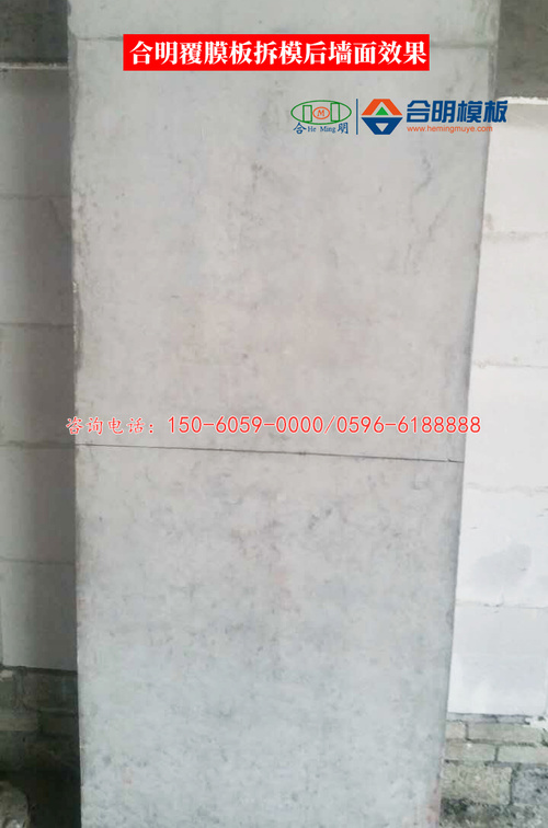 合明覆膜板表層膜厚實(shí)牢固,脫模不會對建筑物造成污染,且可以限制有害氣體的釋放量。覆膜板脫模后墻體平整光滑,可免于二次抹灰,大大縮短工期。