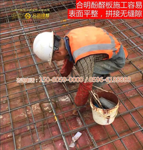 據(jù)反饋,合明酚醛板板面平整,施工中模板之間拼縫整齊,脫模后墻體整潔;模板韌度好,承壓力高,在規(guī)定時間內(nèi)拆模模板可周轉(zhuǎn)8次,綜合核算下來性價比極高。